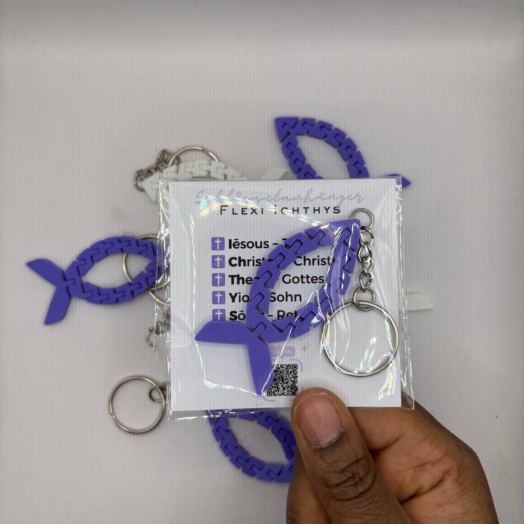 Dieser flexible Schlüsselanhänger im Ichthys-Fisch-Design ist ein modernes Symbol des christlichen Glaubens. Der Ichthys-Fisch steht seit Jahrhunderten für Jesus Christus und ist ein starkes Zeichen für Hoffnung, Vertrauen und Zugehörigkeit zum Glauben – ideal als täglicher Begleiter.